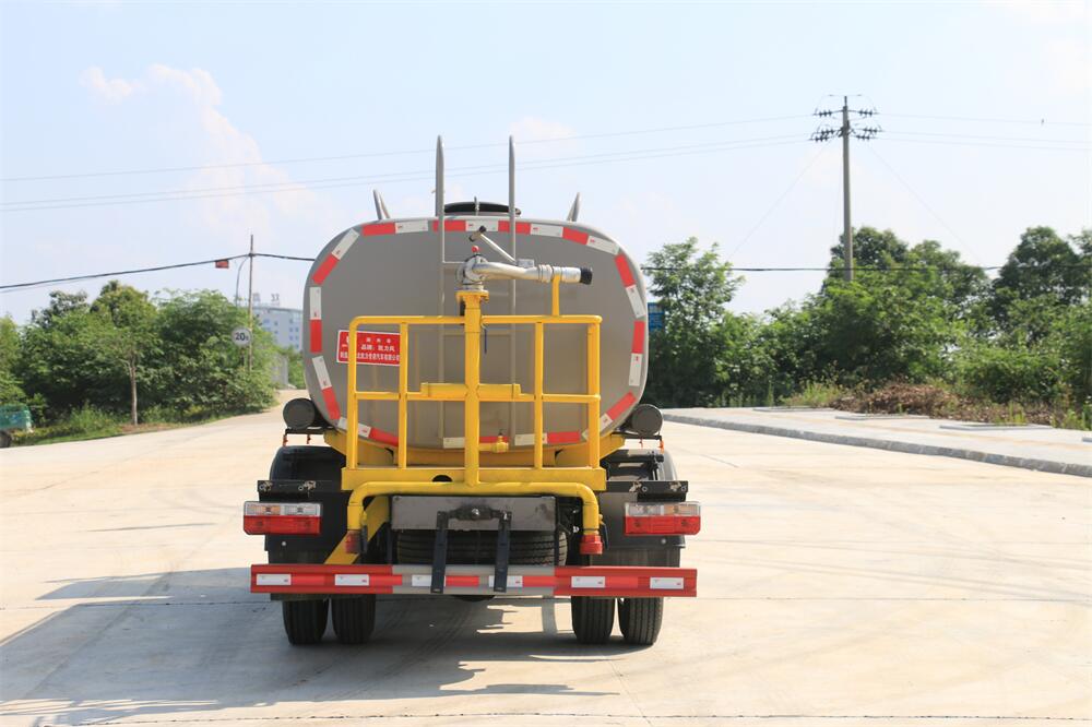 灑水車前裝有鴨形噴嘴或圓頭沖嘴,后面裝有圓柱開灑水噴嘴或蓮蓬頭噴嘴,后部有一工作平臺,裝配有水炮。后部還可裝8個噴嘴(選裝)。