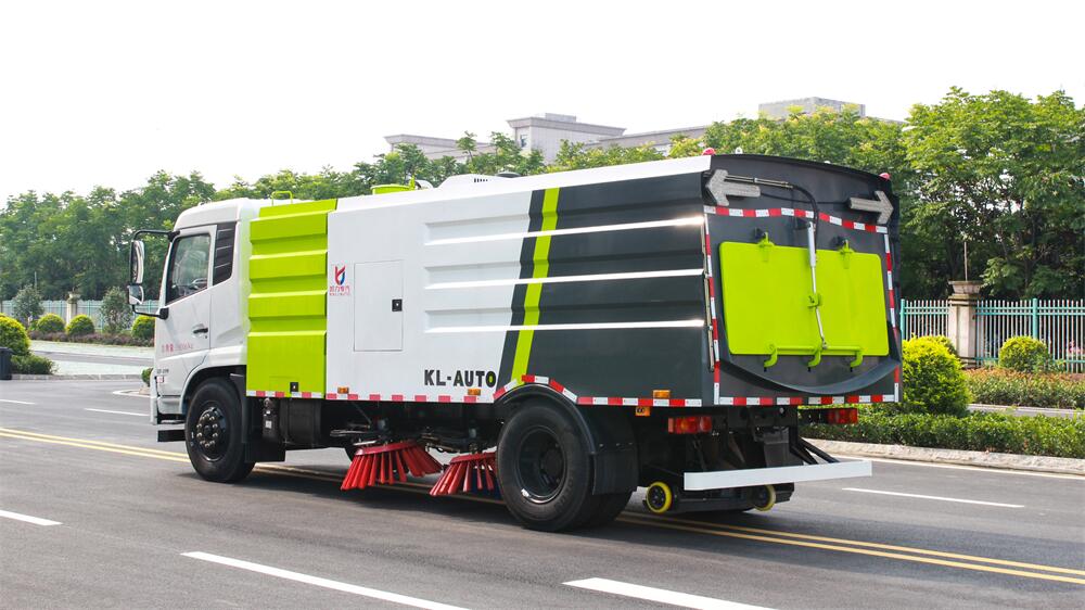 1.采用吸掃混合的方式收集垃圾,濕式除塵、電液,液壓傾翻卸料的作業方式對路面進行清掃作業。