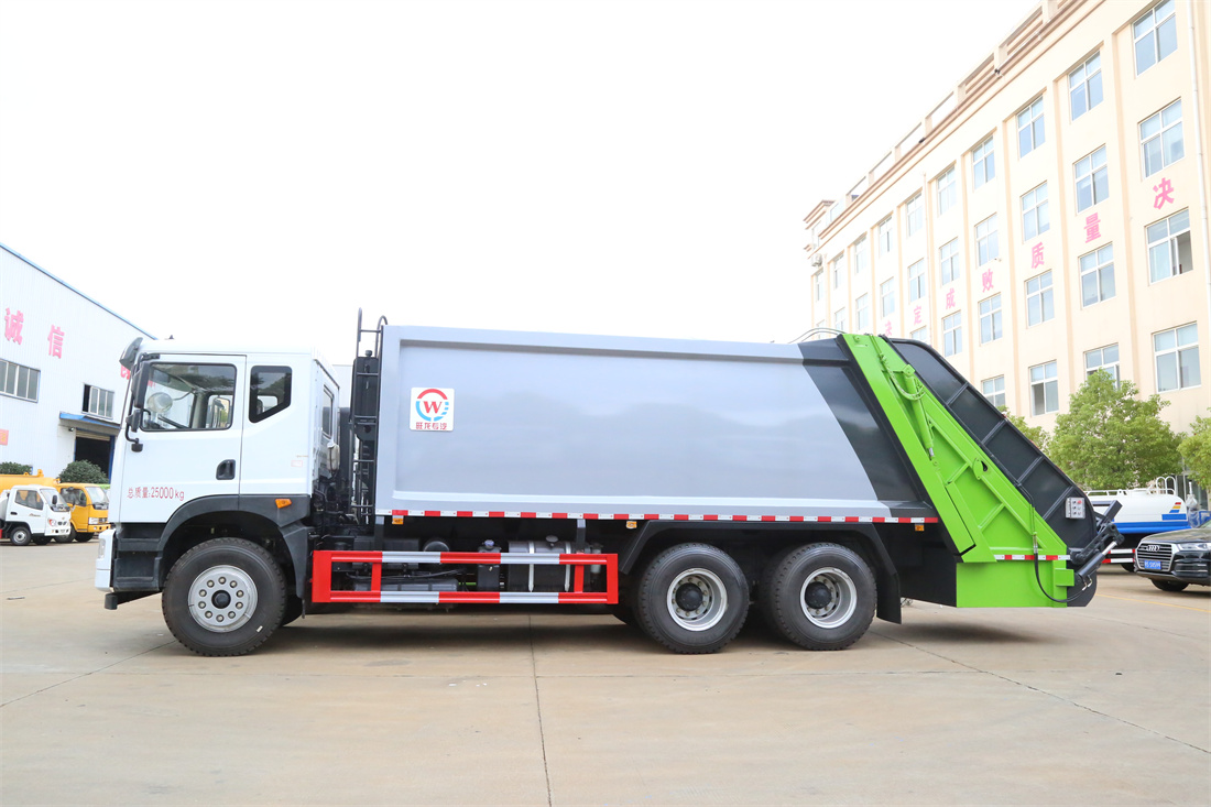 上裝配置:垃圾箱容積:18,20方選擇,新款平面弧形廂體,廂體材料為武鋼優質碳鋼,PLC一鍵操作**,手電一體操作模式,兩側雙電控,帶駕駛室內操作,底板支撐加強,雙向壓縮,開放式易清潔污水箱。壓縮式垃圾車采用機電液一體化技術,借助機、電、液聯合自動**系統、電腦**、手動操作系統,通過填裝器和推鏟等專用裝置,實現垃圾倒入、壓碎或壓扁、強力裝填,把垃圾擠入車廂并壓實和推卸,污水全部進入污水廂,解決了垃圾運輸過程中的二次污染的問題。壓縮式垃圾車具有自動反復壓縮以及蠕動壓縮功能,壓縮比高、密封性好、裝載量大﹑操作方便、環保性好﹑整車利用功率高等優點。作業自動化,垃圾收集方式簡便、高效。后翻轉機構選裝:1、掛塑料桶式翻轉機構;2、掛鐵桶式翻轉機構;3、擺臂式翻轉機構; 4、簸箕斗式翻轉機構。