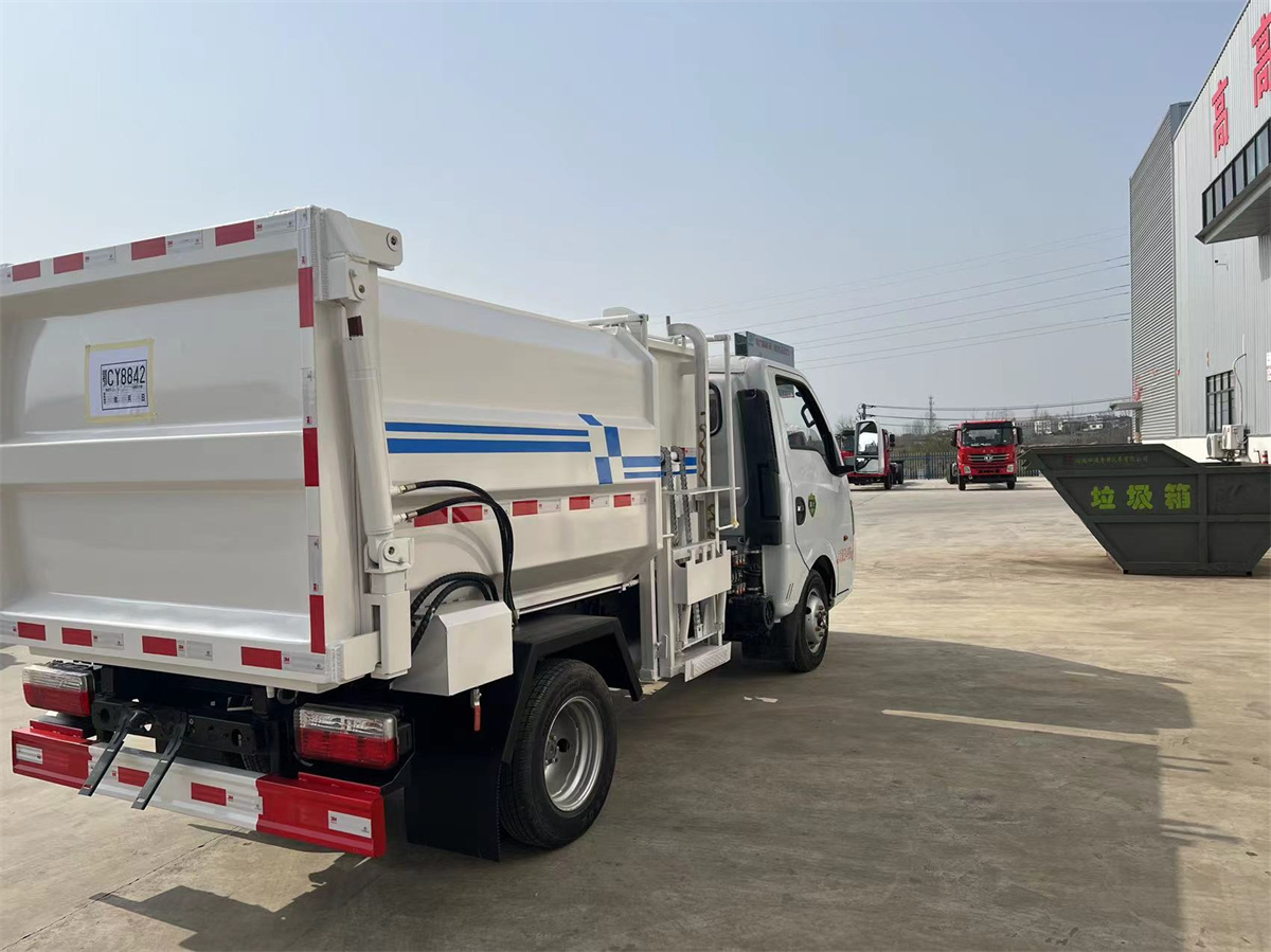 4方掛桶垃圾車-東風(fēng)途逸藍(lán)牌側(cè)裝壓縮掛桶自裝式垃圾車