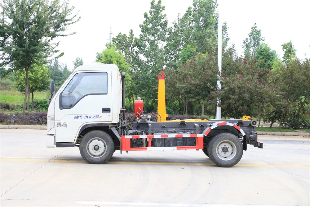 該款鉤臂式垃圾車由液壓系統、操作系統組成。舉升油制缸(1支)系國內知名液壓件廠家生產的雙作用油缸。垃圾廂可自吊上放下,可自行傾倒垃圾,上下一次工作循環時間≤50S。該車的特點是一個車能配多個垃圾廂,能實現一臺車與多個垃圾廂聯合作業,循環運輸,充分提高了車輛的運輸能力。