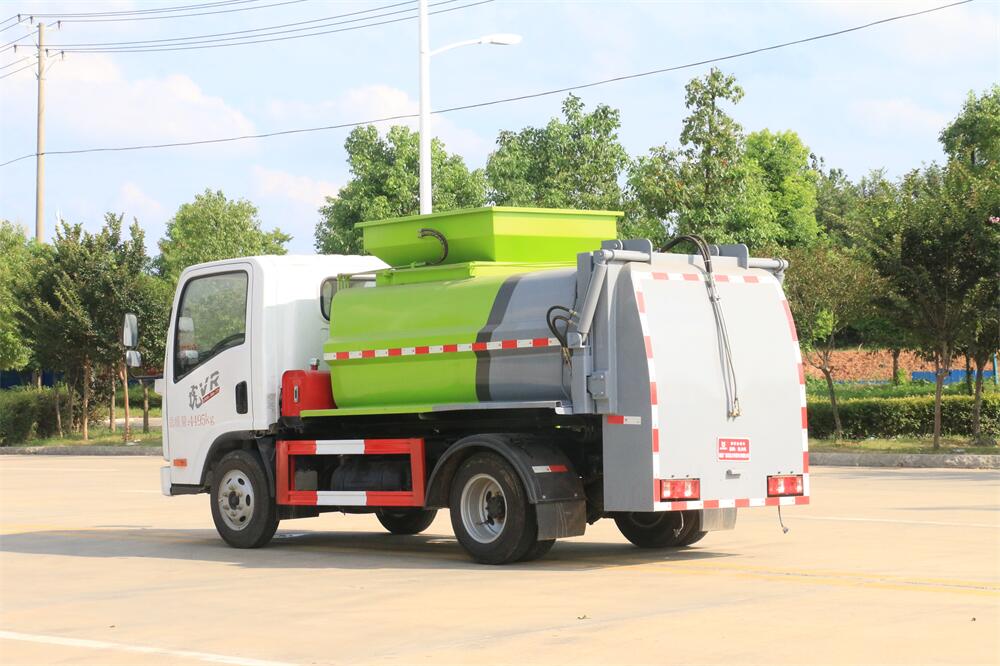 上裝配置:罐體容積6m3,配備120L/240L掛桶提升翻轉(zhuǎn)機構(gòu),液壓系統(tǒng),后蓋液壓鎖緊開啟,罐體可以舉升自卸,尾部帶自流閥;用于運輸液態(tài)垃圾,其特點操作簡單,密封性好,無泄漏,無異味;可選裝固液分離功能,推板擠壓功能,常用于餐館的垃圾轉(zhuǎn)運處理。