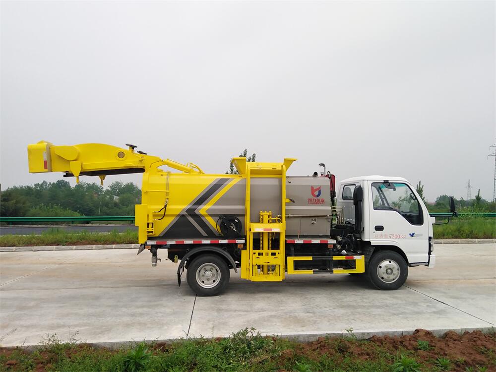 上裝配置:罐體容積6m3,配備120L/240L掛桶提升翻轉(zhuǎn)機構(gòu),液壓系統(tǒng),后蓋液壓鎖緊開啟,罐體可以舉升自卸,尾部帶自流閥;用于運輸液態(tài)垃圾,其特點操作簡單,密封性好,無泄漏,無異味;可選裝固液分離功能,推板擠壓功能,常用于餐館的垃圾轉(zhuǎn)運處理。