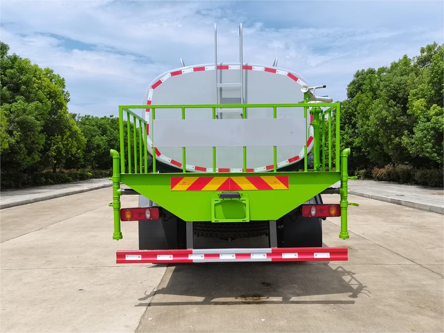 灑水車前裝有鴨形噴嘴或圓頭沖嘴,后面裝有圓柱開灑水噴嘴或蓮蓬頭噴嘴,后部有一工作平臺,裝配有水炮。后部還可裝8個噴嘴(選裝)。