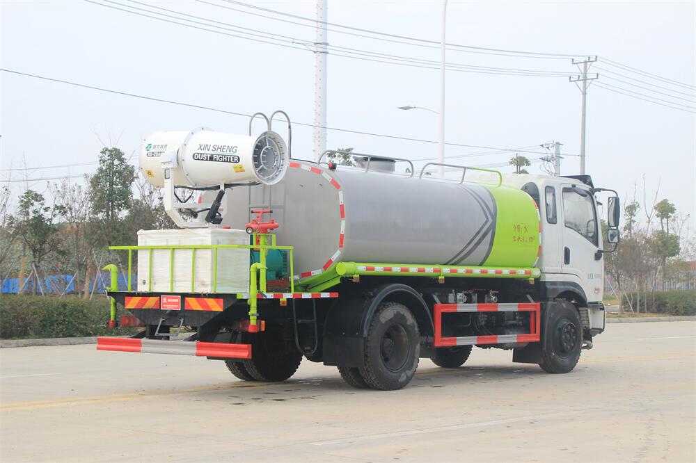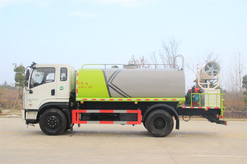 上裝配置:罐體容積 12立方,風送式霧炮機組30米,40米選擇,罐體采用國標Q235碳鋼材質,罐體厚度4MM,前后封頭5MM加厚型,罐體內雙層隔板具有防波蕩作用,以減輕汽車行駛時罐內液體沖擊;灑水車整車及外形尺寸嚴格按照**機動車公告制作而成;裝配大功率專用灑水泵,前沖、后灑、側噴、后平臺帶綠化灑水炮,灑水炮可全方位旋轉,可連續調成直沖狀、大雨、小雨、毛毛雨;配消防接口,自流閥,濾網,帶自吸自排功能。前封頭帶水位計,后平臺主管路帶1寸澆花接口,后爬梯,帶1個消防接頭,帶1個自流閥,1個過濾裝置,其余標配。