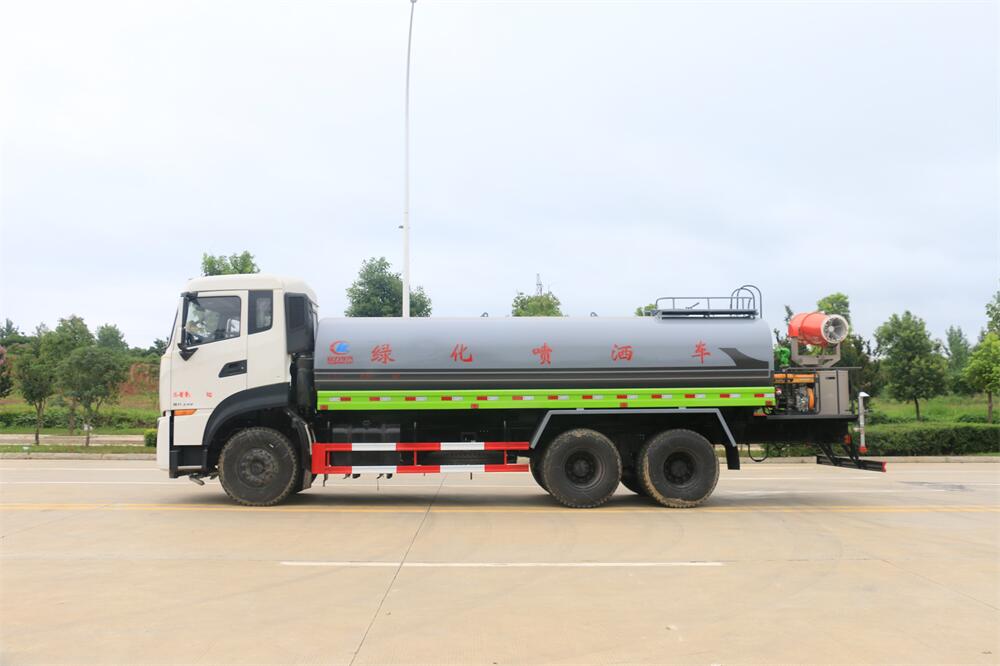 上裝配置:罐體容積 18-20立方,風送式霧炮機組30米,40米選擇,罐體采用國標Q235碳鋼材質,罐體厚度4MM,前后封頭5MM加厚型,罐體內雙層隔板具有防波蕩作用,以減輕汽車行駛時罐內液體沖擊;灑水車整車及外形尺寸嚴格按照**機動車公告制作而成;裝配大功率專用灑水泵,前沖、后灑、側噴、后平臺帶綠化灑水炮,灑水炮可全方位旋轉,可連續調成直沖狀、大雨、小雨、毛毛雨;配消防接口,自流閥,濾網,帶自吸自排功能。前封頭帶水位計,后平臺主管路帶1寸澆花接口,后爬梯,帶1個消防接頭,帶1個自流閥,1個過濾裝置,其余標配。