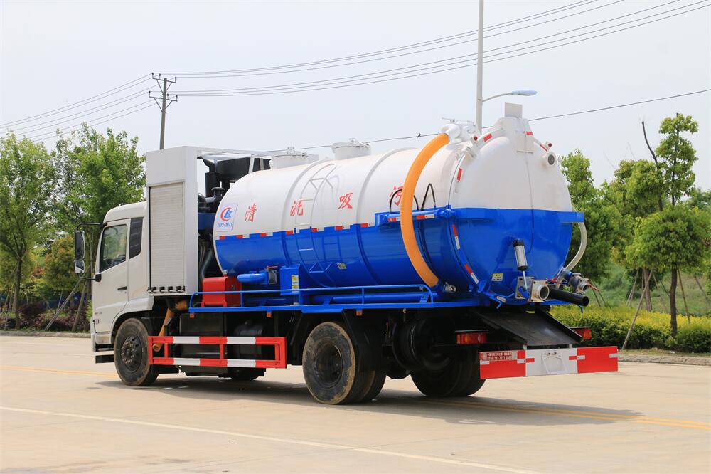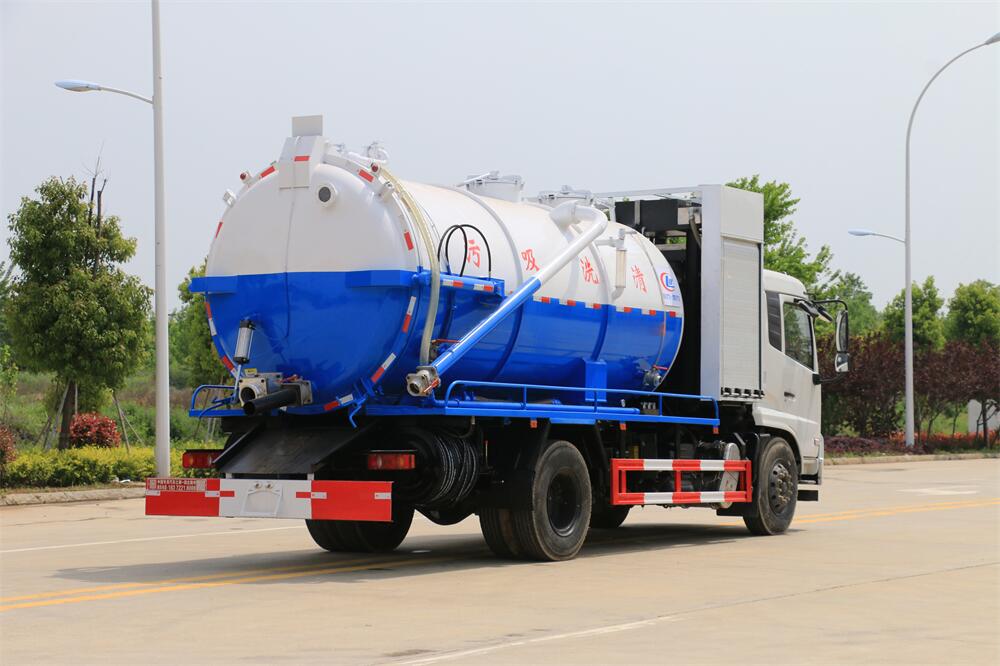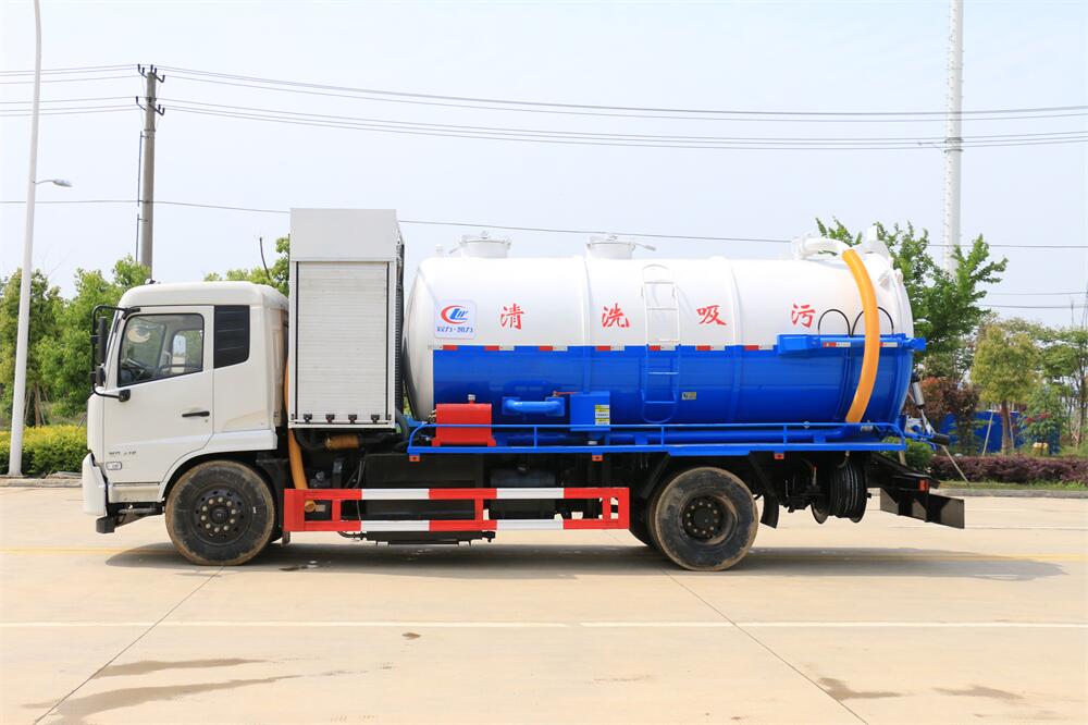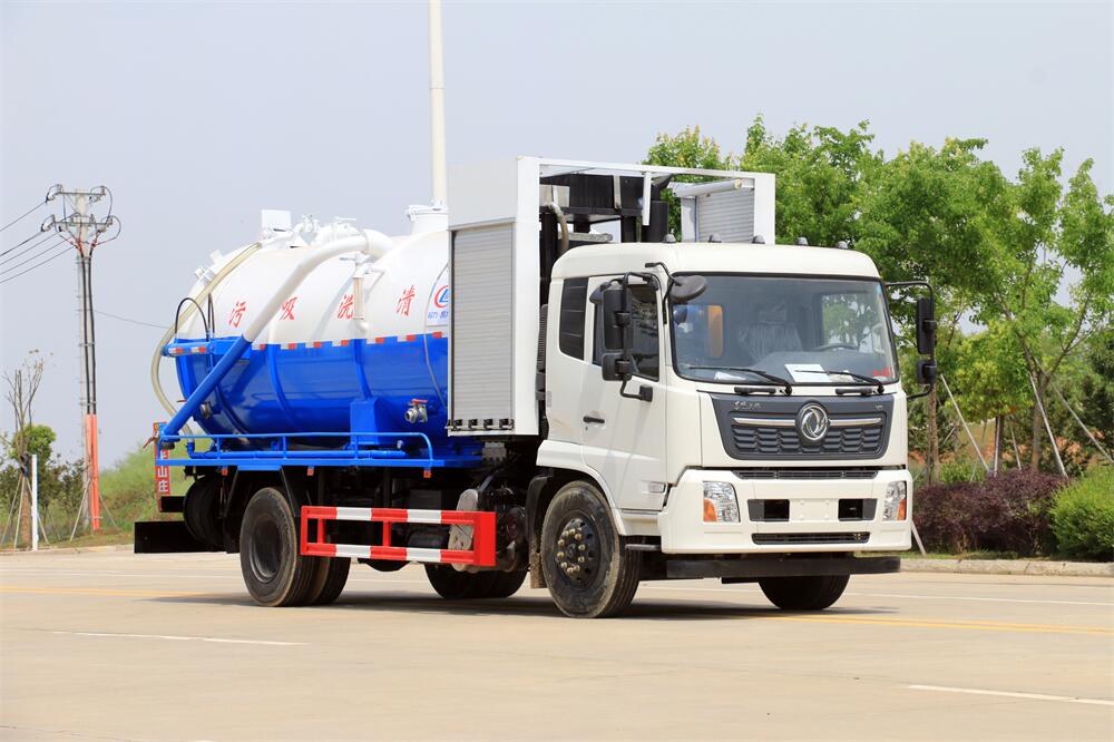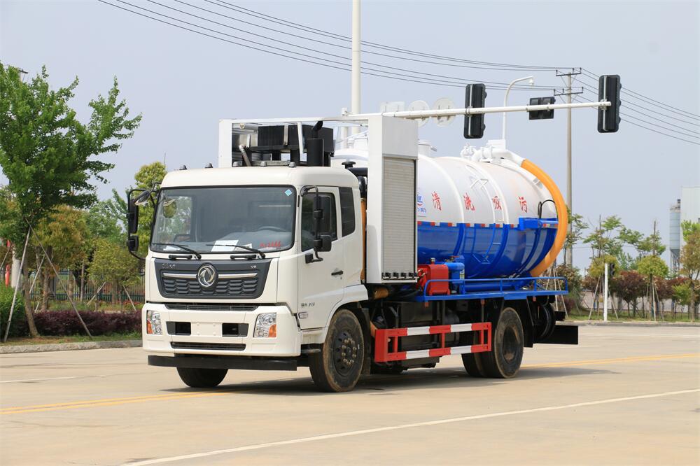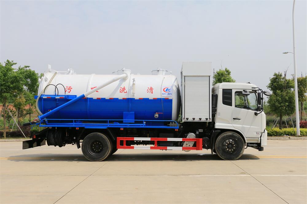 15方清洗吸污車-東風(fēng)天錦15方10+5清洗吸污兩用車-帶副發(fā)動機 圓罐