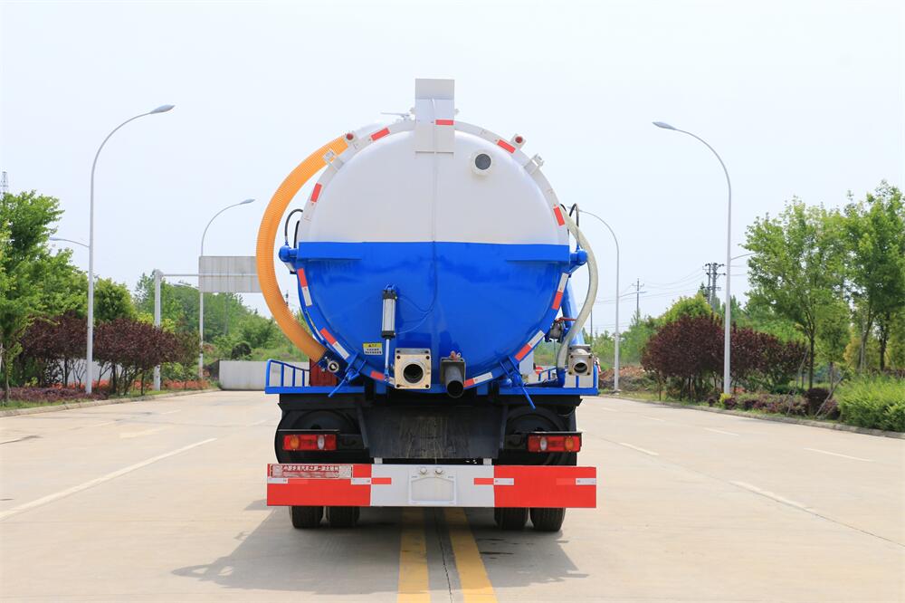 上裝配置:清水罐約 5 立方,污水罐約 10 立 方;罐體 8mm 厚,封頭 8mm 厚,水罐、污罐可 互通,用 100 球閥**開關(guān);清洗部份采用天 津通潔高壓泵,壓力 19Mpa,流量 215L/min, 配 80 米直徑 22 高壓管帶液壓卷盤;吸污部份 采用濰柴375馬力副發(fā)動機帶山東SK-30水循 環(huán)泵(副發(fā)自帶),吸污罐帶舉升,后封頭焊 死(可選擇后封頭全開),尾部加裝一個 600mm 快開,罐體后尾部一個 DN150 排污口球閥,一 個 DN100 吸污球閥帶出口盤,一個視污窗,一 根 10m 吸污管,一套陰陽端,壓力表,防溢 閥,箭頭燈,工具箱,淋管裝置,高壓泵帶氣 吹水。配一個 4.5 公斤水雷噴頭,另帶一個 80 公分手持洗車噴頭。