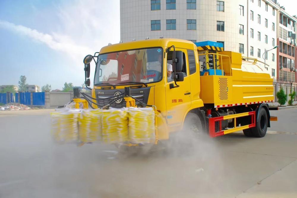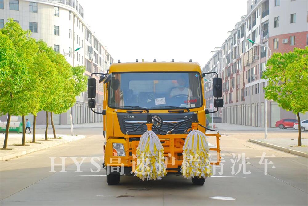 在行駛過程中,噴嘴向護欄進行低壓噴水沖洗護欄,然后四個馬達帶著滾刷旋轉并夾著護欄對護欄進行滾動清洗作業。