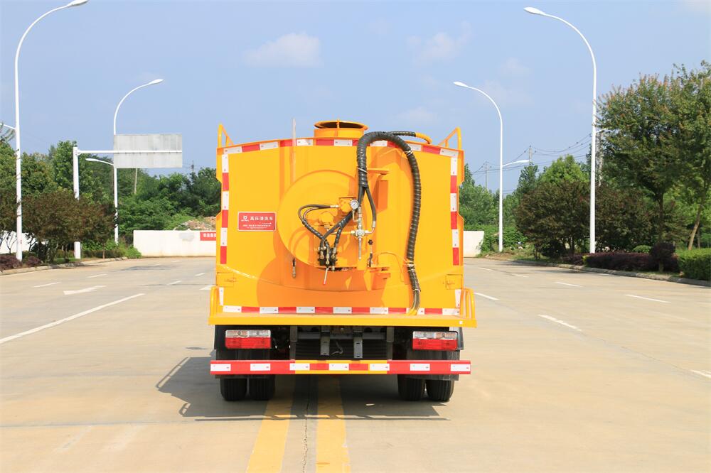 上裝配置:德國品浮高壓泵(24MPA)/天津雙耀高壓泵(24MPA),夾心取力器,億豐/偉業真空泵,10個高壓沖頭,自動回位卷盤,60米高壓管,帶工具箱,加粗型污水觀察管,6米吸污管,自留口一個,吊桿座,油水分離器,防溢閥。