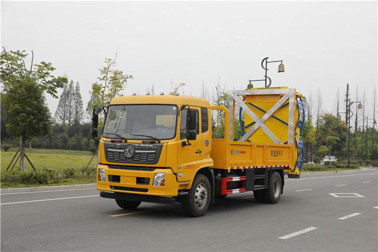 上裝配置:護箱:采用Q235國標邊2mm底板花紋板3mm厚,箱體后部防撞包采用美國進口T90型號,防撞緩沖吸能模塊主要由車載防撞緩沖墊和導向標志架組成,充當施工作業車輛后方的緩沖衛士。如若發生追尾事故,能夠在肇事車輛和前方施工作業區域之間構建一個緩沖區域,通過機具結構變形吸收撞擊的能量,**大限度地降低被保護人員及設備遭到碰撞的幾率。高性能液壓系統,可實現快速舉升和落下操作,方便設備運輸轉場,一鍵啟動功能,舉升和落下防撞裝置,當防撞裝置未完全落下到工作位置或舉升到垂直運輸位置時,會有自動**告音提示。