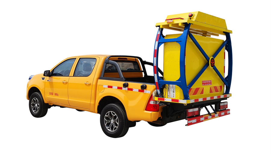 福田皮卡防撞緩沖車采用福田全新一代勝途5底盤,防撞緩沖模塊升降采用液壓**,過程平穩、安全、機械化作業程度高,操作方便。防撞緩沖模塊整體采用國產知名技術產品70K防撞緩沖模塊。太平洋保險承保。本車適用于城市道路,郊區道路,高速公路,機場橋等場合。主要功用:置于道路施工作業人員和設備后方,在發生追尾事故中充當肇事車輛和施工作業人員或設備的緩沖區域,并且通過自身結構變形吸收撞擊能量,**大限度的降低施工人員或設備發生危險的幾率,同時**大限度的降低肇事車輛及人員的危險。