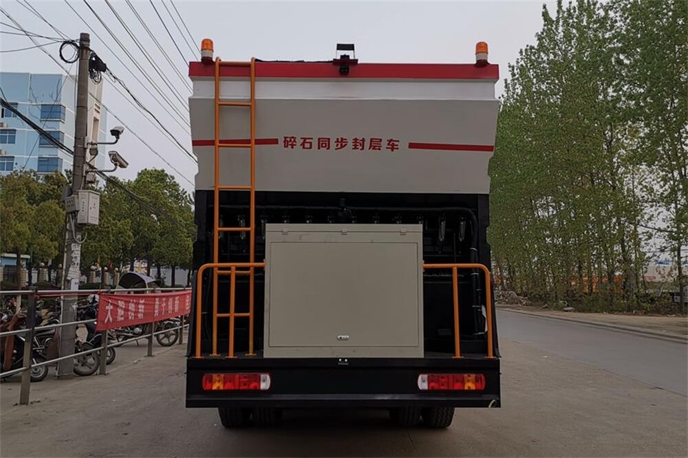 前四后八同步碎石封層車主要有瀝青灑布系統(tǒng)、石料撒布系統(tǒng)、電氣操作系統(tǒng)等組成。